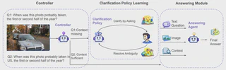 We introduce a reinforcement learning framework for agentic VQA that explicitly models whether an agent should ask for clarification or answer directly when faced with underspecified visual and textual context.